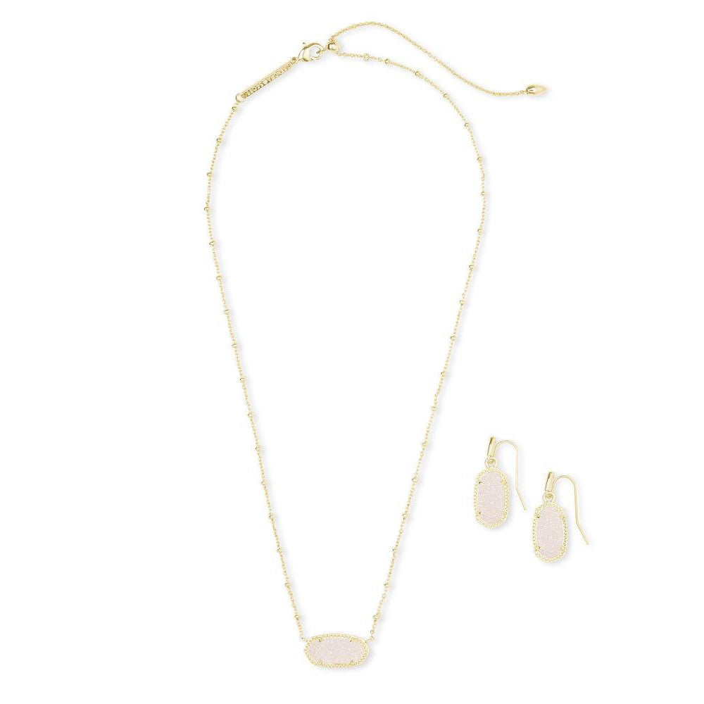 Two classics, one exclusive price! The Elisa Satellite Necklace & Lee Earrings Gift Set in Iridescent Drusy is perfect for longtime and new KS fans alike, and comes pre-wrapped for easy gifting.