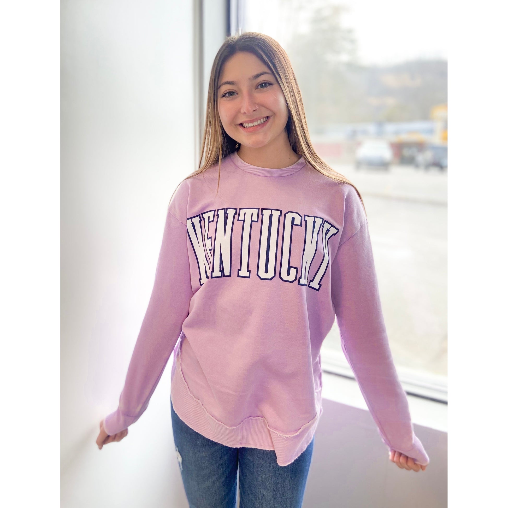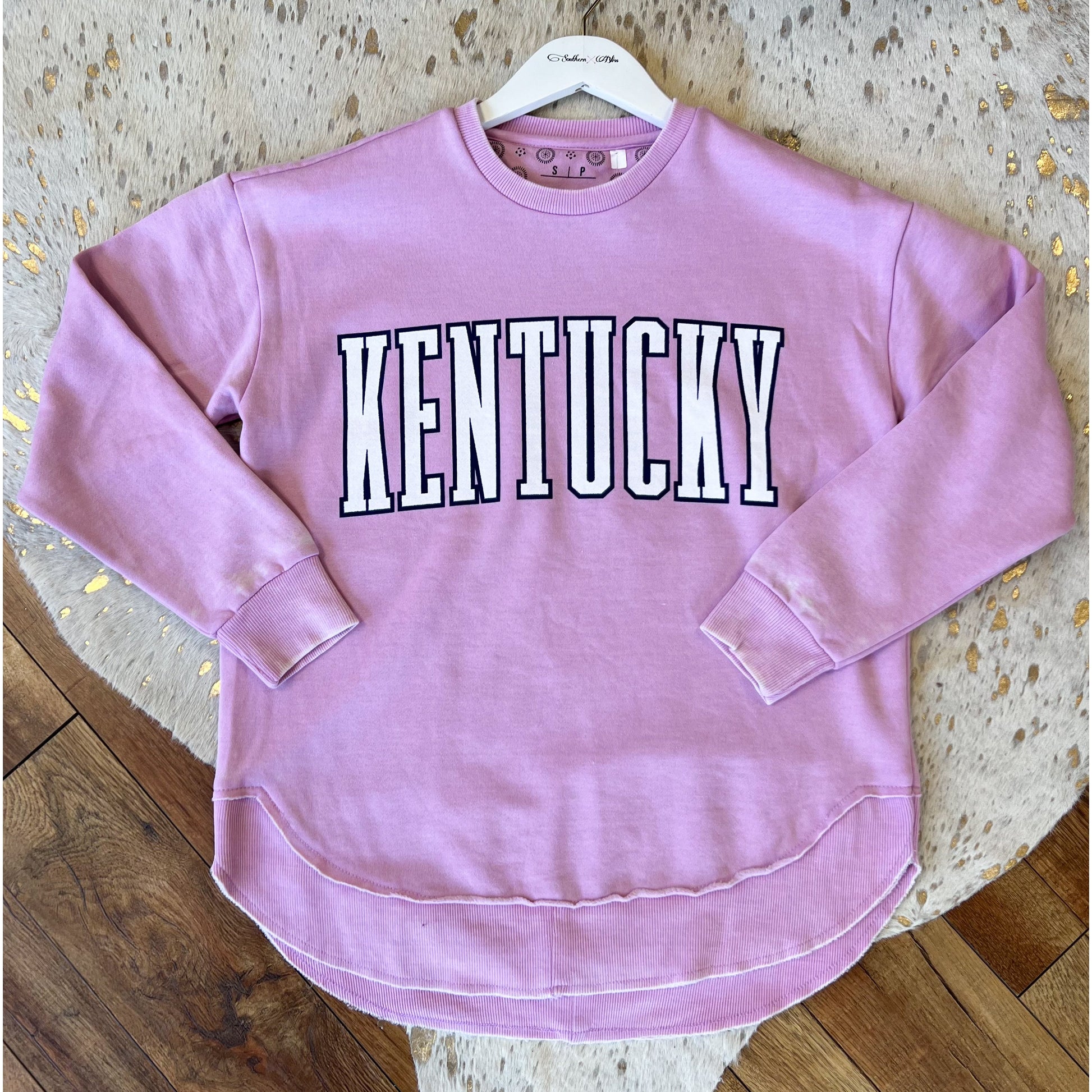 Another new spring Kentucky crew is here and we are living for it! Grab this purple pocho crew neck top now while sizes last! We also have it available in yellow!