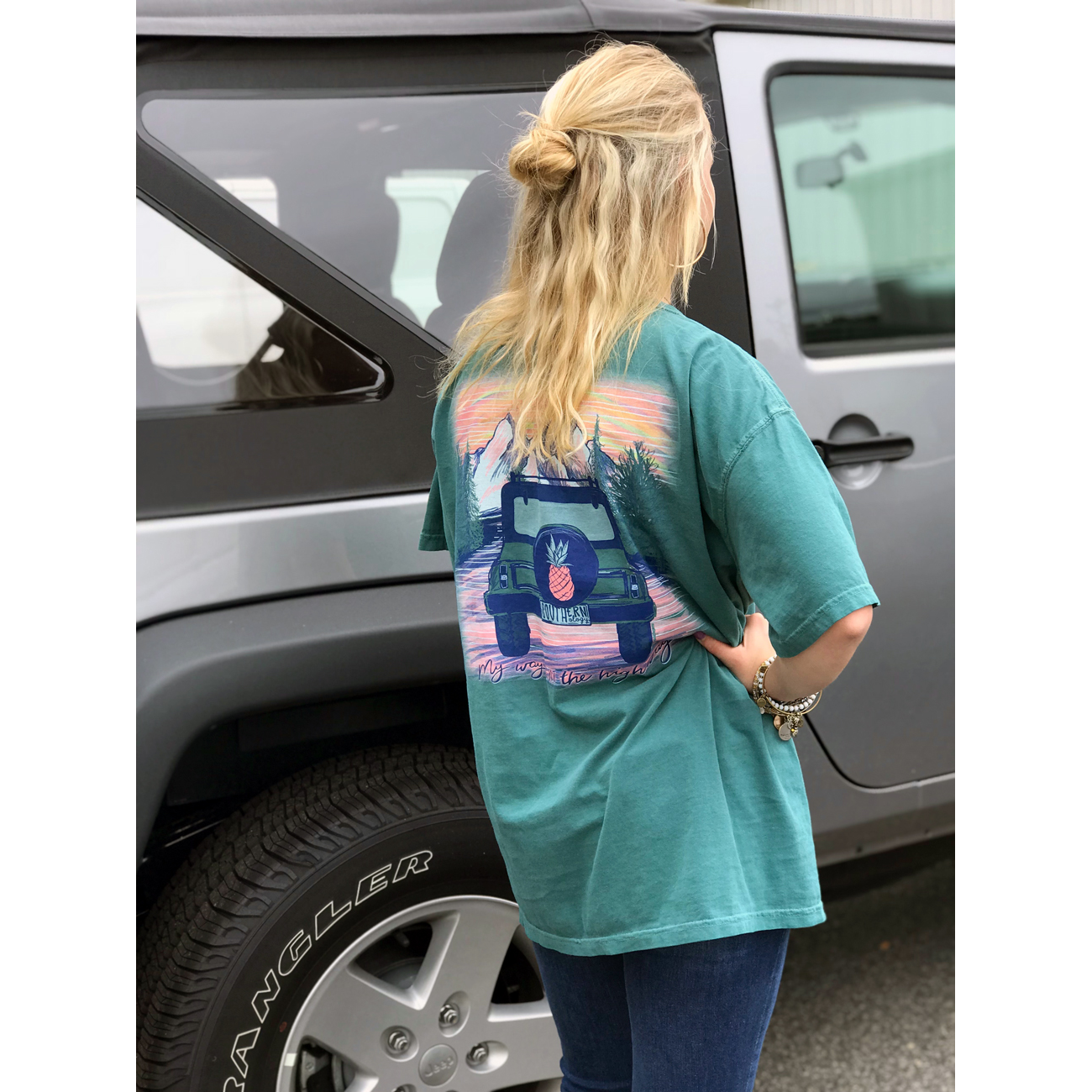 Life is a highway - and we're ready to ride it with our windows down and radio turned up! Sit back, relax, and take in the views of the Blue Ridge Mountains along a winding road in this new My Way is Not the Highway t-shirt from Southernology®! This exclusive hand-drawn design is printed on an Emerald Comfort Colors t-shirt.