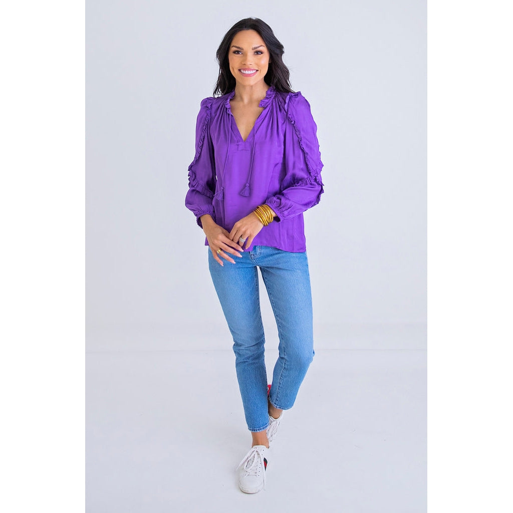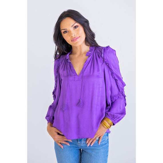 Purple Viscose Ruffle Top