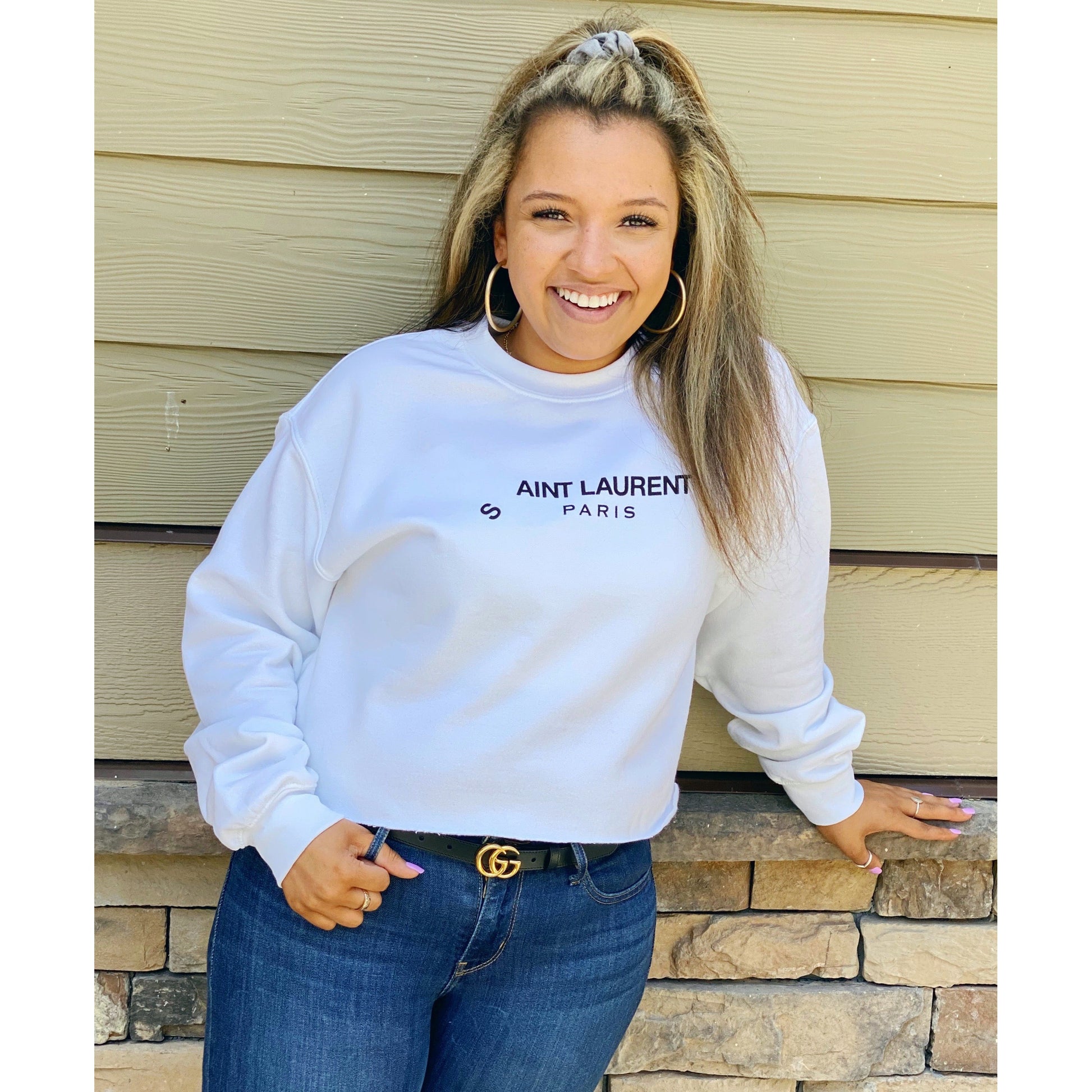 This crop crew is light weight and not too thick! Could easily wear it during the chilly summer nights. Would go perfect with some biker shorts and cute sneakers!