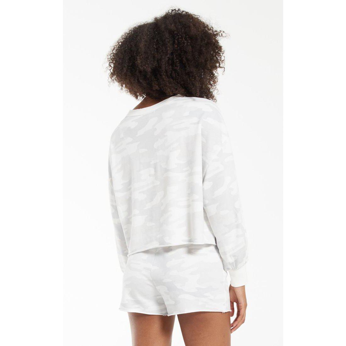 The Tempest Sweatshirt has been a favorite for a few seasons, and in the new Camo Dove Grey for summer 2021 will sure to be a hit. Made from our 60/40 cotton poly Baby French Terry Fabric. With a crew neckline, dropped shoulders, raw hem, and ribbed cuffs, it’s ready to be paired with the matching Camo Sporty Short or your favorite jeans.