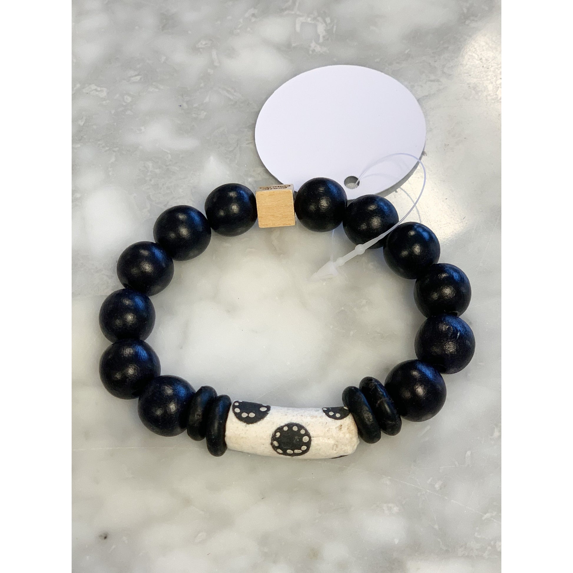 The Tyler is made with pola dot clay beads.