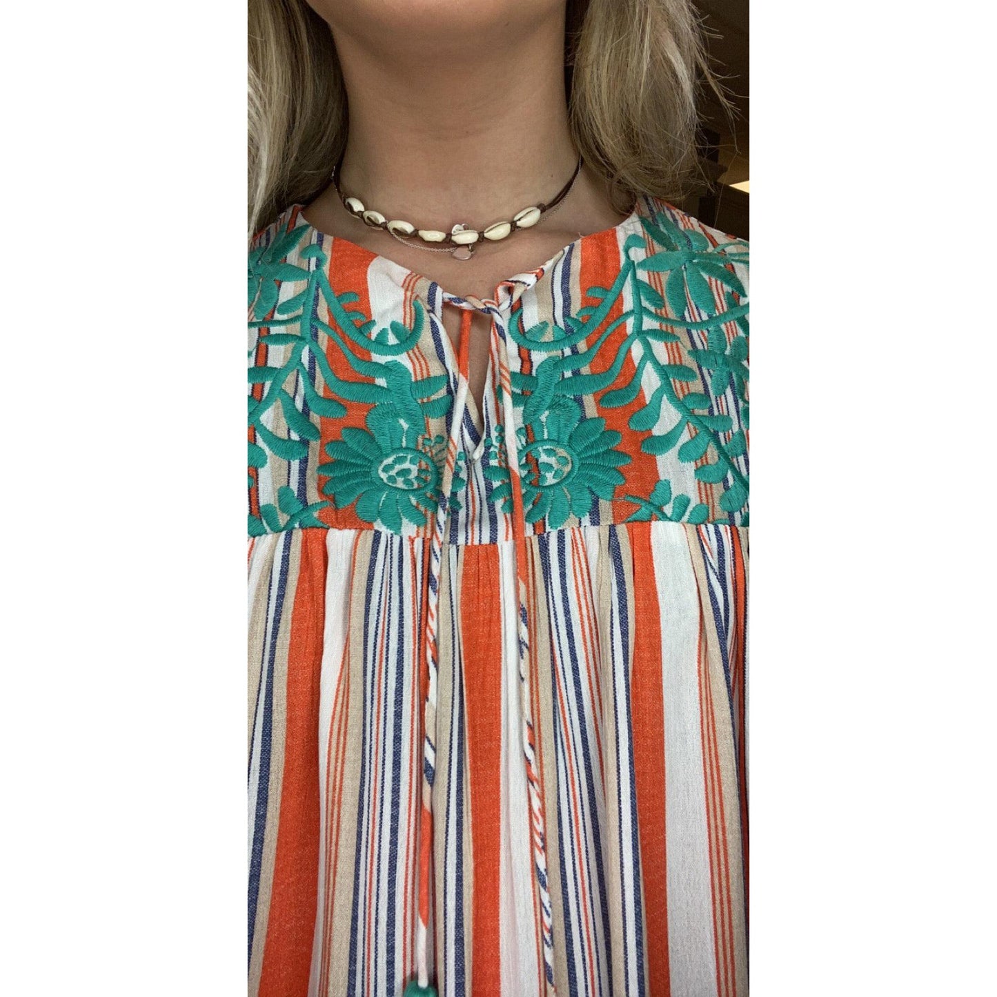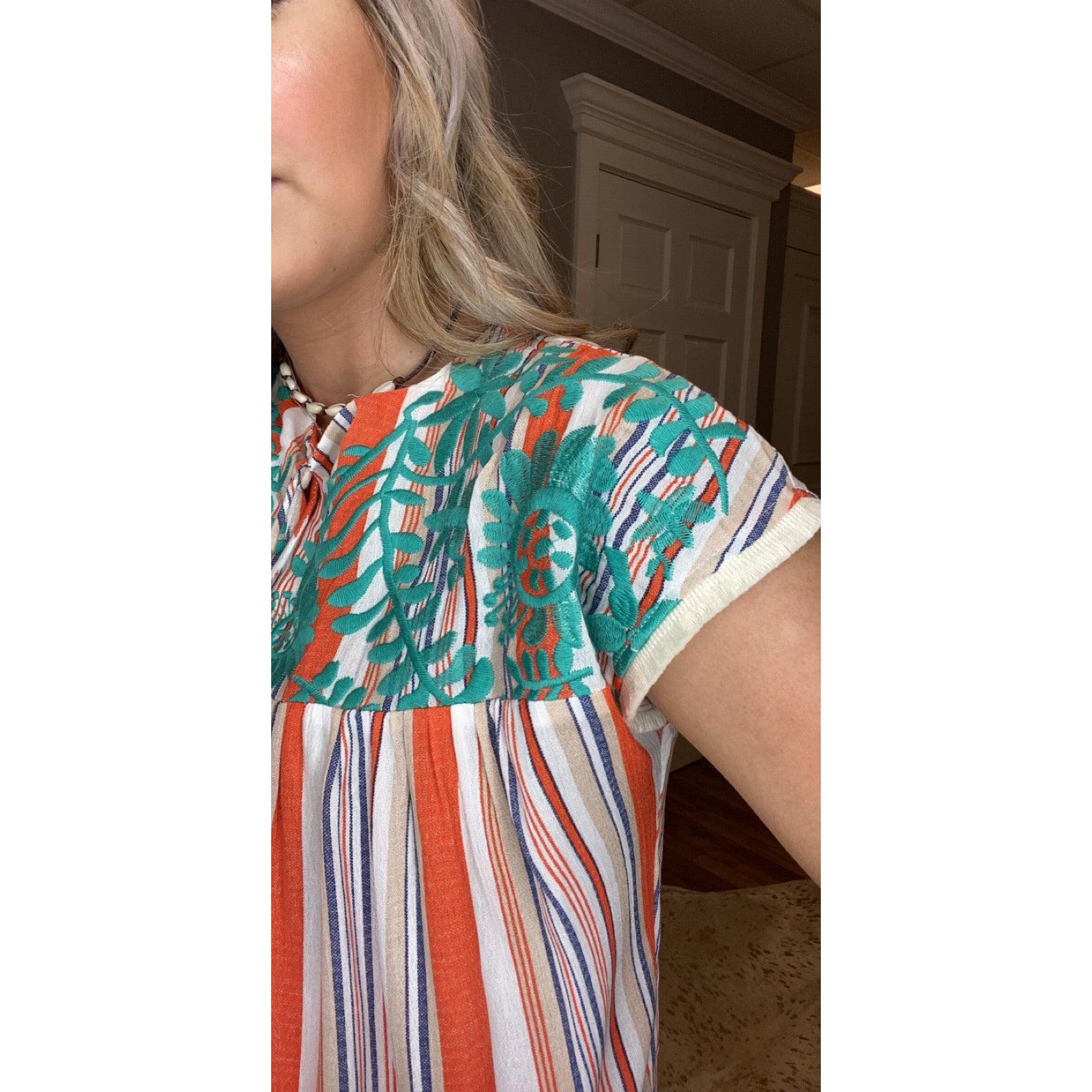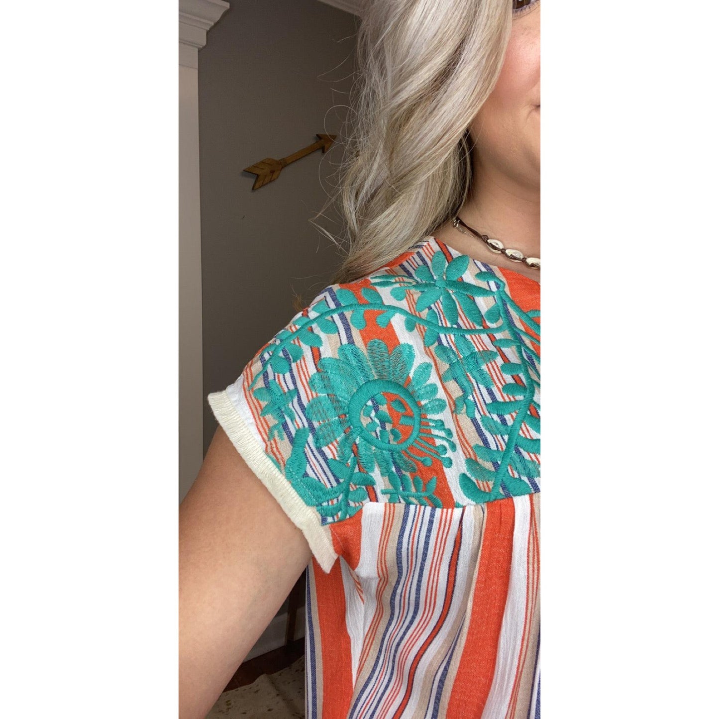 The colors in this top are completely stunning. With the orange and green it makes the perfect summer colors! Pair it with some denim, a cute pair of shoes and accessories and you'll have the perfect outfit.