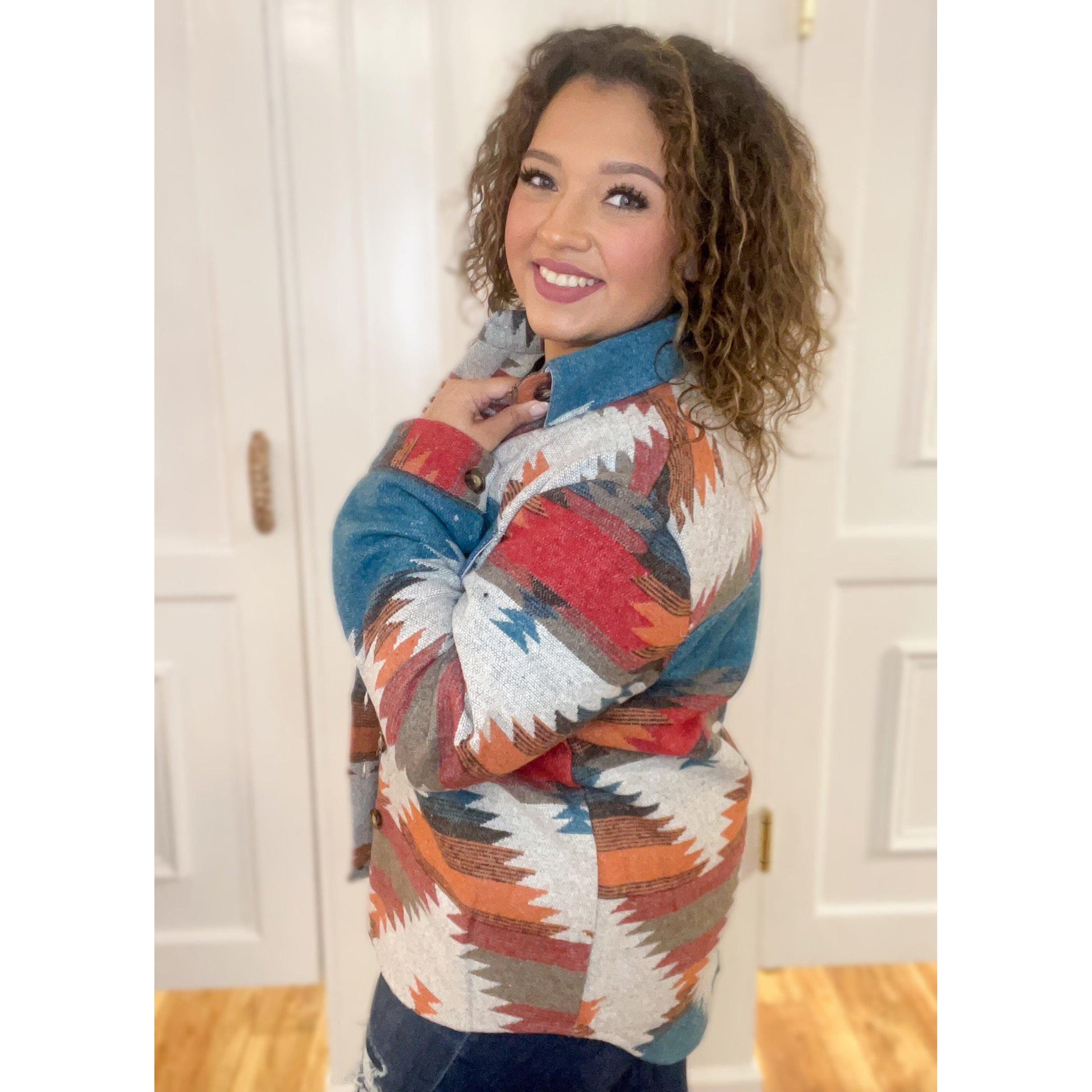 Button down shacket with two front button chest pockets and features a ‘slight’ high low fit. Fits true to size.